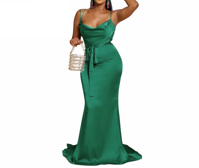 (Green)2023 Styles Women Sexy&Fashion Autumn/Winter TikTok&Instagram Styles Silk Backless Maxi DressSKU: #XF73003-3