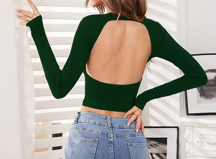 (Green)2023 Styles Women Sexy&Fashion Spring&Summer TikTok&Instagram Styles Backless Long Sleeve TeeSKU: #CF68273-2