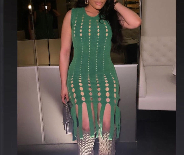 (Green)2023 Styles Women Sexy&Fashion Spring&Summer TikTok&Instagram Styles Cut Out Tassel Mini DressSKU: #CF77216-2