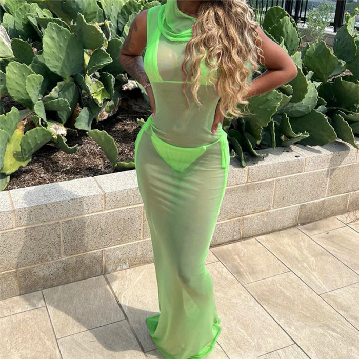 (Green)2023 Styles Women Sexy&Fashion Spring&Summer TikTok&Instagram Styles Mesh Hoodie Maxi DressSKU: #CF77425-4