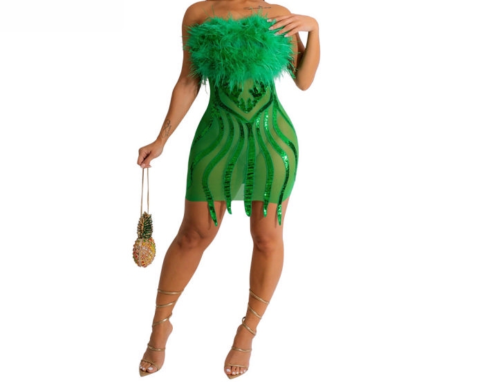 (Green)2023 Styles Women Sexy&Fashion Spring&Summer TikTok&Instagram Styles Mesh Sequins Mini DressSKU: #OM495-3