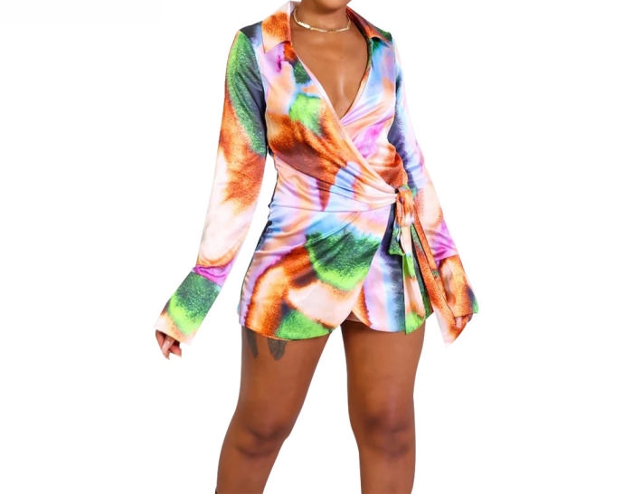 (Green)2023 Styles Women Sexy&Fashion Spring&Summer TikTok&Instagram Styles Print Deep V Neck RomperSKU: #CF82044-2