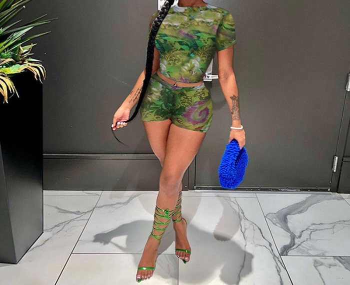 (Green)2023 Styles Women Sexy&Fashion Spring&Summer TikTok&Instagram Styles Print Short Two Piece SuitSKU: #CF47520-2