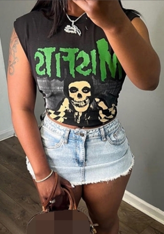 (Green)2023 Styles Women Sexy&Fashion Spring&Summer TikTok&Instagram Styles Print Sleeveless TeeSKU: #CF77497-3