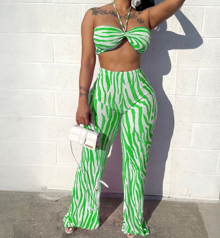 (Green)2023 Styles Women Sexy&Fashion Spring&Summer TikTok&Instagram Styles Striped Two Piece SuitSKU: #OM484-4