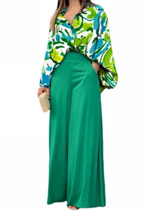 (Green)2024 Styles Plus Size Women Summer Loose Plus-Size Casual Printed Shirt Top with Wide-Leg Pants Two-Piece SetSKU: #CF91053-6