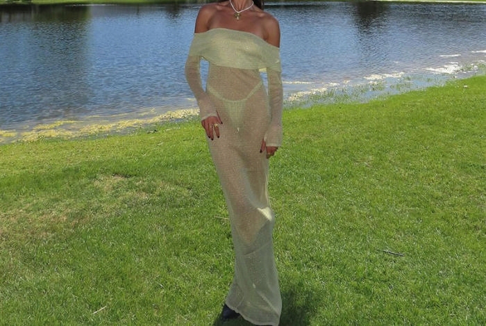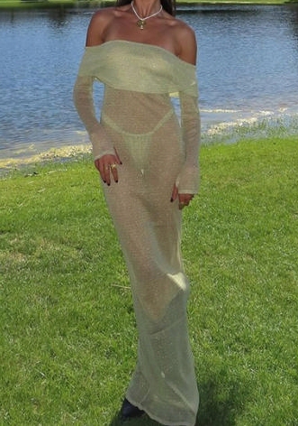 (Green)2024 Styles Women Sexy Sheer Off-Shoulder Maxi Dress with Halter NecklineSKU: #CF77856-2