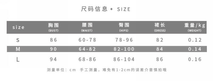 | Size | Bust | Waist | Hips |