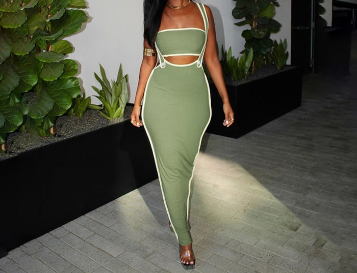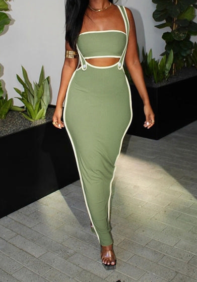 (Green)2024 Styles Women Summer Fashion Sexy Halter Crop Top Open-Work Slim Maxi DressSKU: #CF83311-4