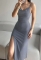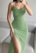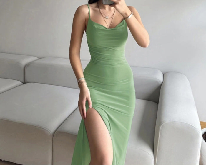 (Green)2024 Styles Women Summer Fashion Sexy V-Neck Split Fitted Halter Midi DressSKU: #CF88253-4