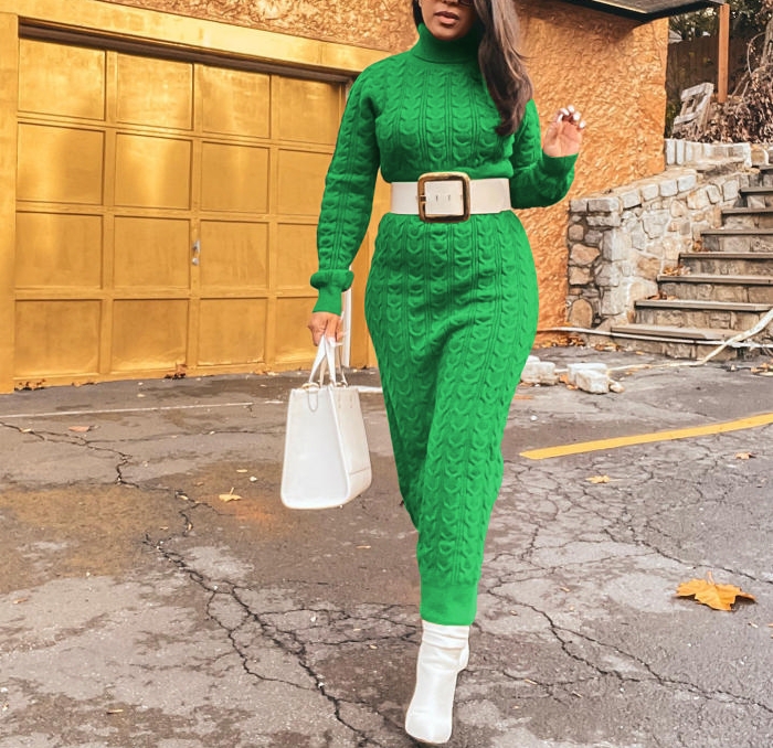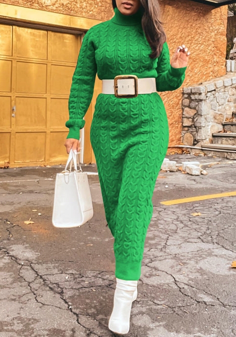 (Green)(Not Waite Tie)2022 Styles Women Sexy Spring&Winter TikTok&Instagram Styles Sweater Maxi DressSKU: #XF85051-5