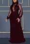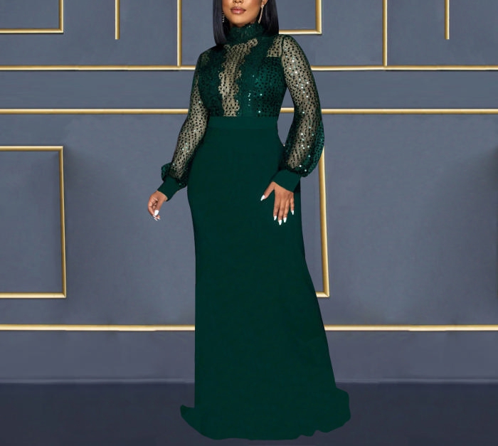 (Green)(Plus Size)2022 Styles Women Fashion Spring&Winter TikTok&Instagram Styles Long Sleeve Mesh Sequin Maxi DressSKU: #XF27265-3