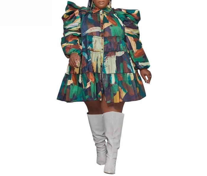 (Green)(Plus Size)2023 Styles Women Sexy&Fashion Spring&Summer TikTok&Instagram Styles Print Shirts DressSKU: #CF85002-1