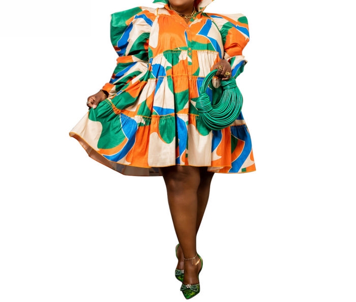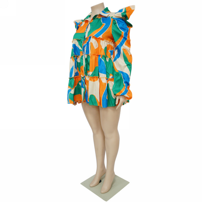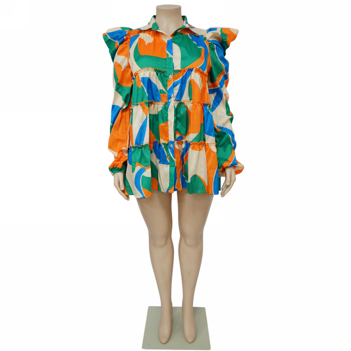 (Green)(Plus Size)2023 Styles Women Sexy&Fashion Spring&Summer TikTok&Instagram Styles Print Shirts DressSKU: #CF85002-7