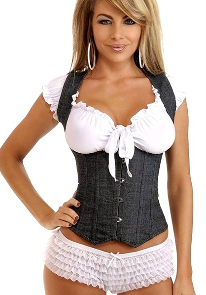 Grey Halter Front Denim Cotton UnderBust CORSETSKU: #QX1053-2