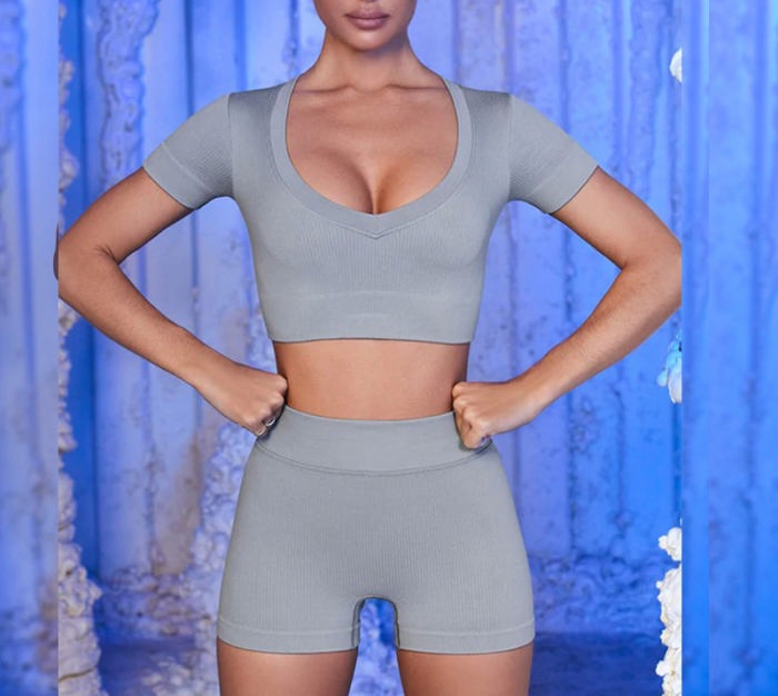(High Quality)2023 Styles Women Sexy&Fashion Spring&Summer TikTok&Instagram Styles Short Yoga Tracksuit SuitSKU: ##CF84061-3