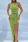 (Khaki)2022 Styles Women Fashion Summer TikTok&Instagram Styles Single Shoulder Split Maxi DressSKU: #XF92584-3