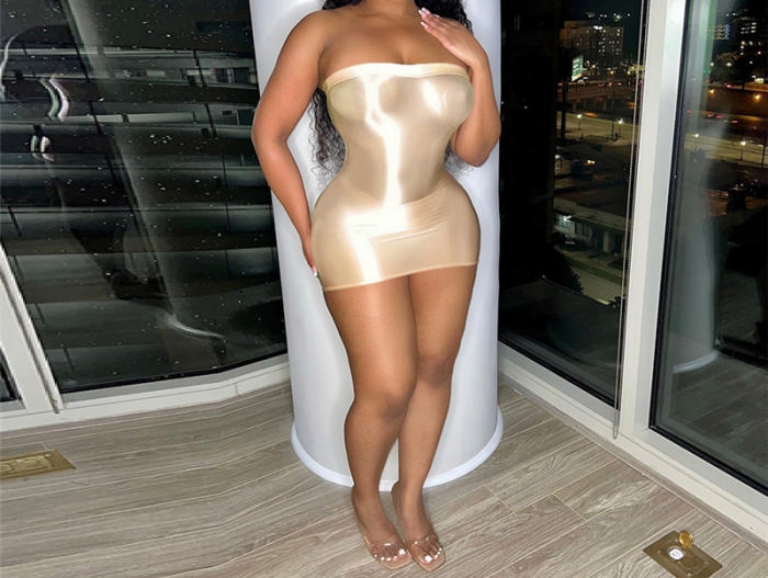 (Khaki)2023 Styles Women Sexy&Fashion Spring&Summer TikTok&Instagram Styles Tube Mini DressSKU: #CF47646-3