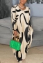 (Khaki)(Plus Size)2022 Styles Women Fashion Spring&Winter TikTok&Instagram Styles Long Sleeve Loose Maxi DressSKU: #XF27255-4