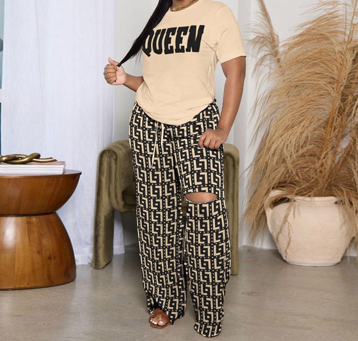 (Khaki)(Plus Size)2023 Styles Women Sexy&Fashion Spring&Summer TikTok&Instagram Styles Loose Two Piece SuitSKU: #XF27345-2