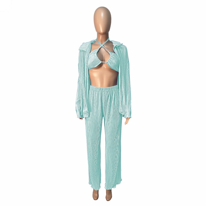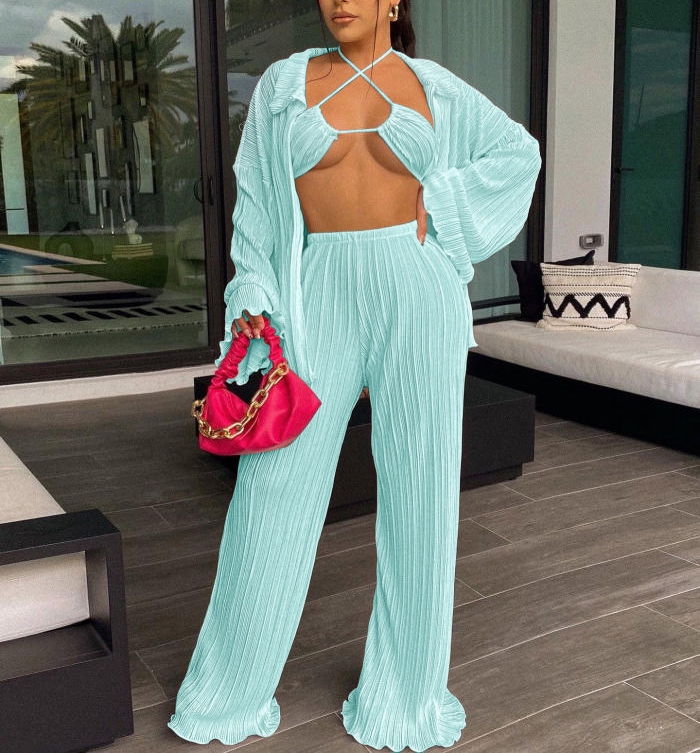 (Light Blue)2022 Styles Women Fashion Summer TikTok&Instagram Styles Three Piece SuitSKU: #OU0122-9