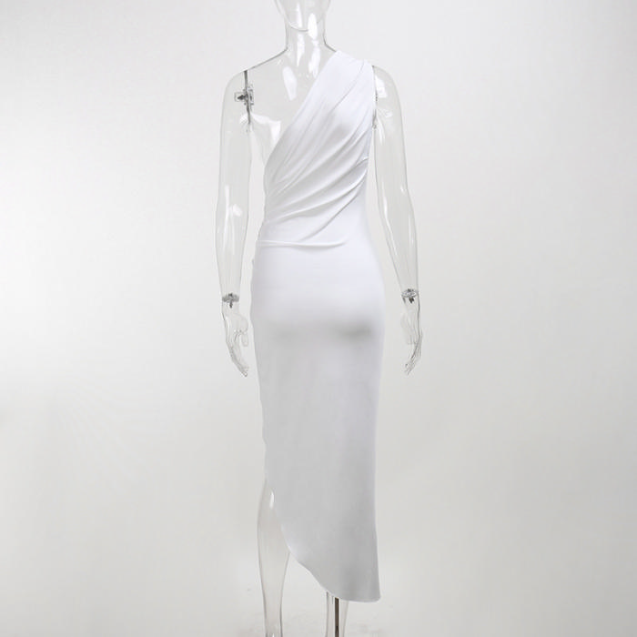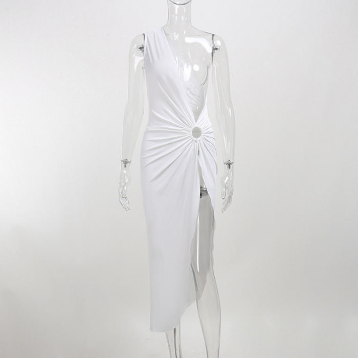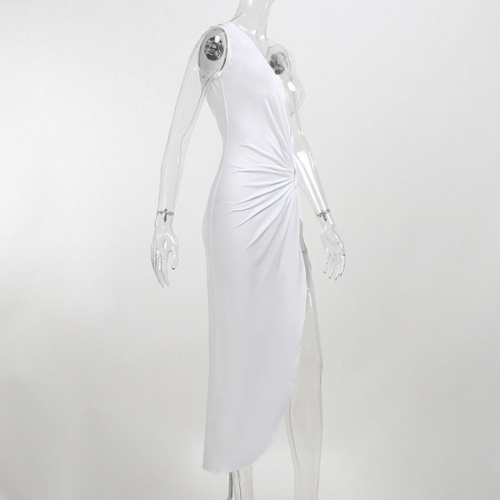 (No Bodysuit)(Real Image)2022 Styles Women Fashion Summer INS Styles Soli Color Irregular High Split Maxi DressSKU: #XF92453-1