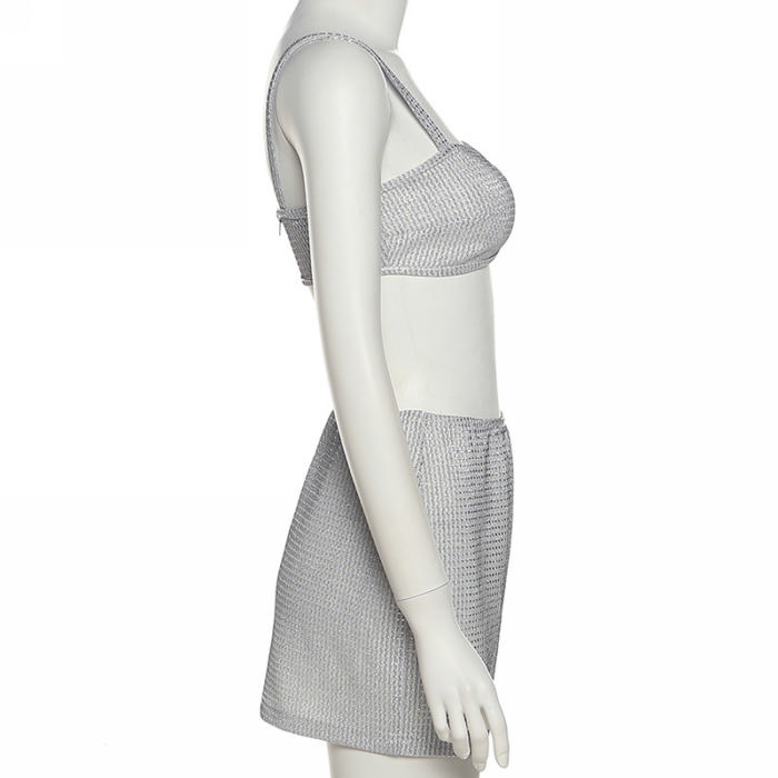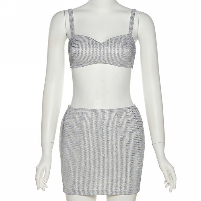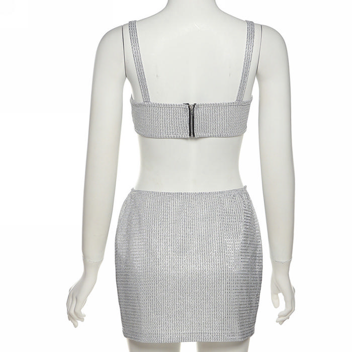 (No Mesh)(Real Image)2022 Styles Women Fashion Instagram Styles Silver Two Piece DressSKU: #CF48740-1
