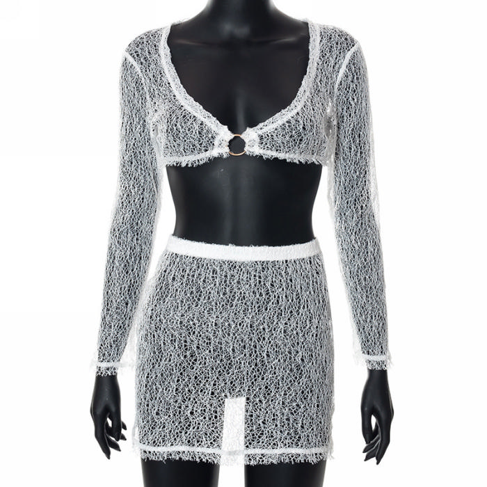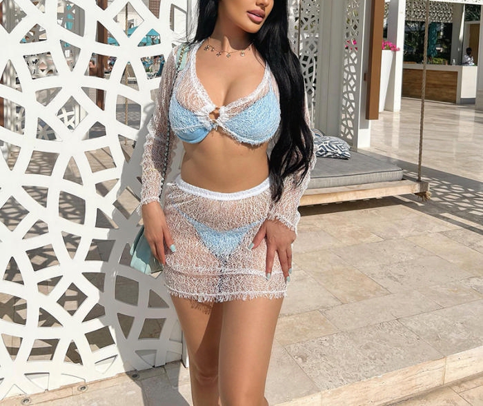 (Not Bikini Set)(Real Image)2022 Styles Women Fashion INS Styles White Lace Two Piece DressSKU: #CF68002-1