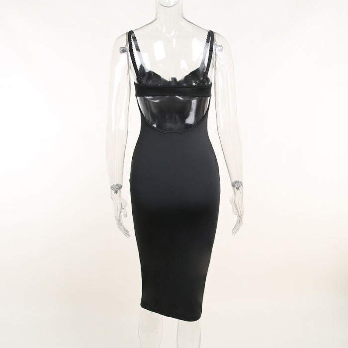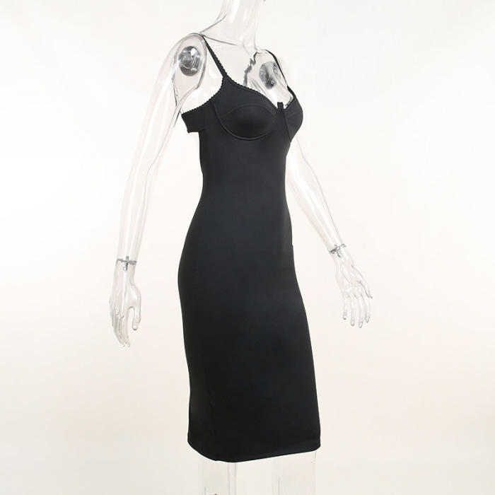 (Not Gloves)(Real Image)2022 Styles Women Fashion INS Styles Black Strap Mini DressSKU: #XF92539-1