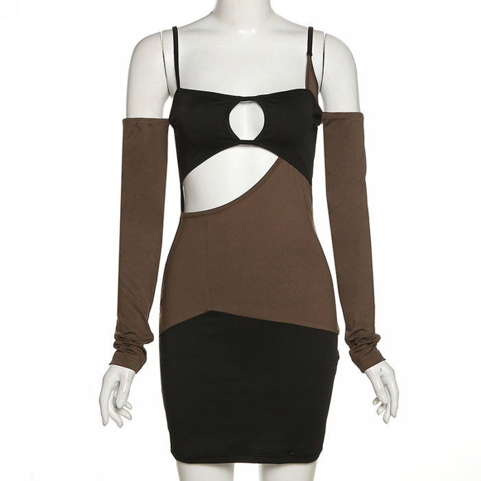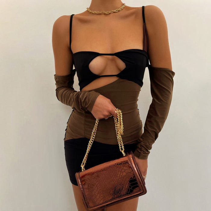 (Not Handbag)(Real Image)2022 Styles Women Fashion Summer INS Styles Cold Shoulder Cut Out Club DressSKU: #CF12275-1