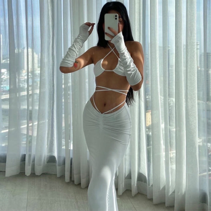 (Not Sleeve)2021 Styles Women Fashion INS Styles Fashion Long Sleeve Maxi DressSKU: #CF22468-1