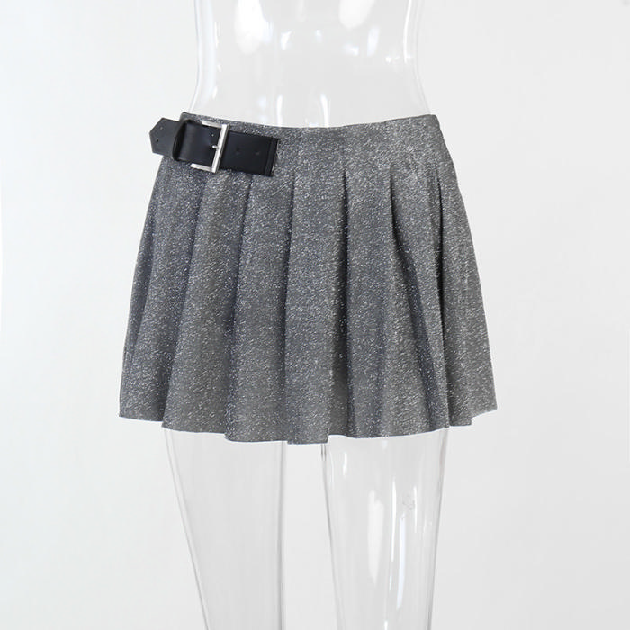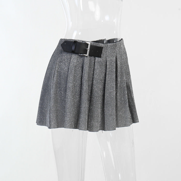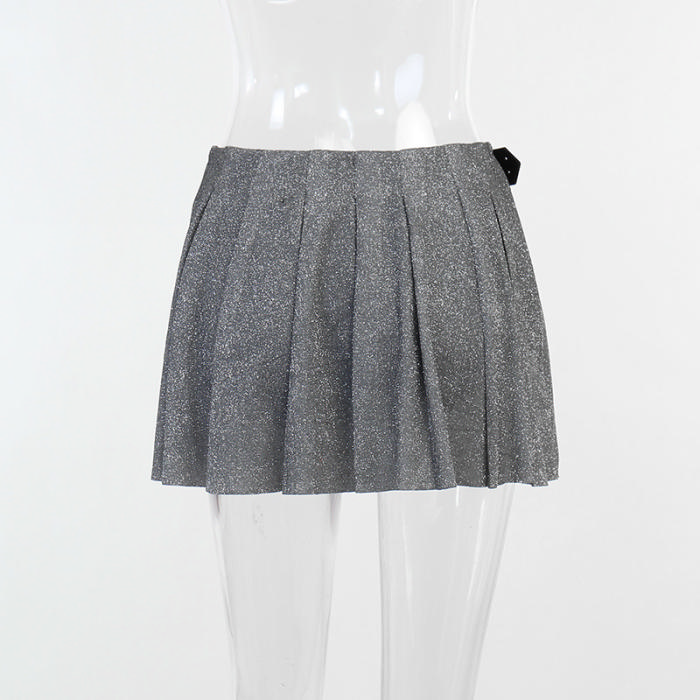 (Not Tops)(Real Image)2022 Styles Women Fashion Summer TikTok&Instagram Styles Silver Velvet SkirtsSKU: #XF92633-1