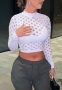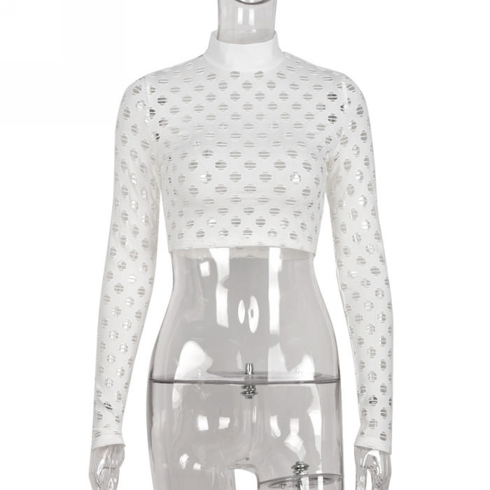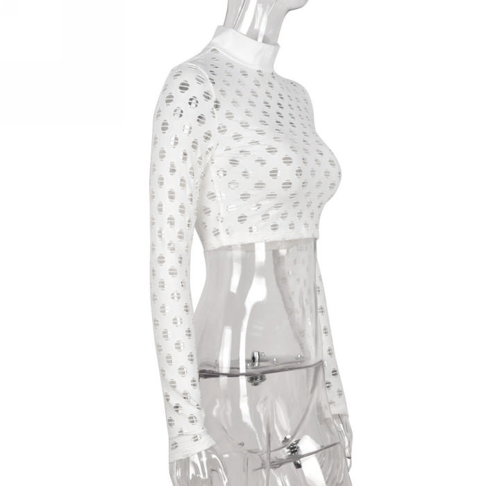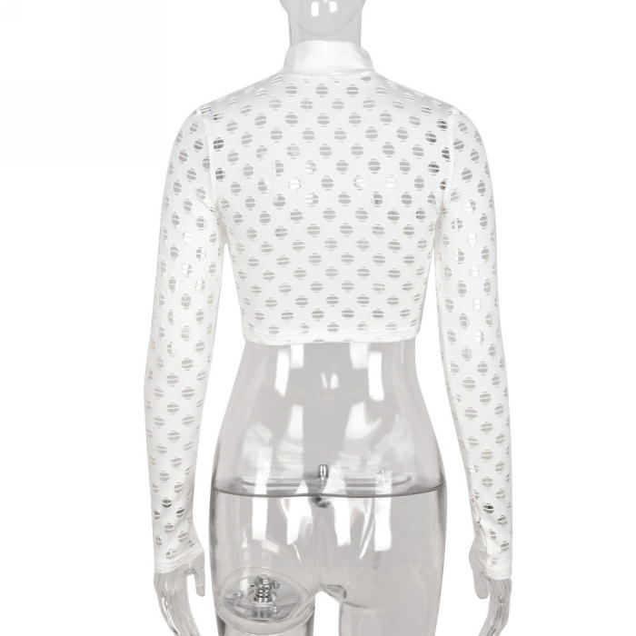 (Olny Tops)(Real Image)2022 Styles Women Fashion INS Styles White Hollow Long Sleeve TopsSKU: #CF59083-1