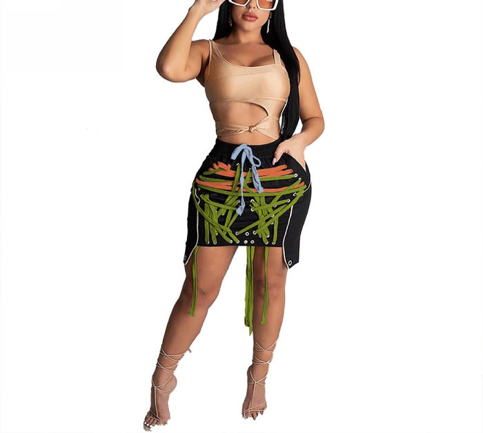 (Only Bottom)2022 Styles Women Fashion Spring INS Styles Bandage SkirtsSKU: #OEM5333-6