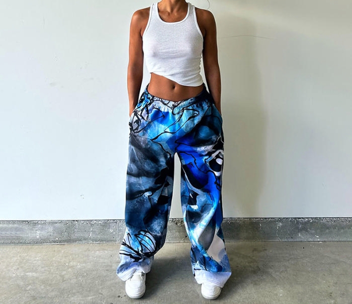 (Only Bottom)(Blue)2023 Styles Women Sexy&Fashion Autumn/Winter TikTok&Instagram Styles Print Loose Long PantsSKU: #CF47795-2