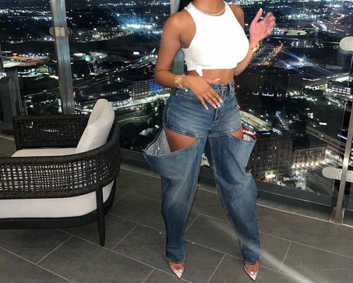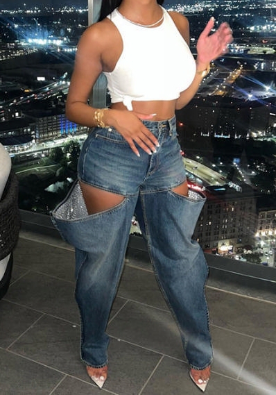(Only Bottom)(Blue)2023 Styles Women Sexy&Fashion Autumn/Winter TikTok&Instagram Styles Ripped Jeans Long PantsSKU: #CF77662-1