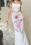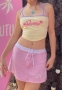 (Only Bottom,Blue)2024 Styles Women Dopamine Color-Blocked Print Drawstring Sexy Pencil Mini SkirtSKU: #CF761810-2