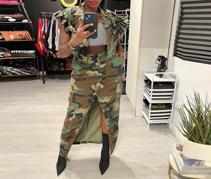 (Only Bottom)(Camouflage Green)2023 Styles Women Sexy&Fashion Spring&Summer TikTok&Instagram Styles Camouflage SkirtsSKU: #CF59424-2