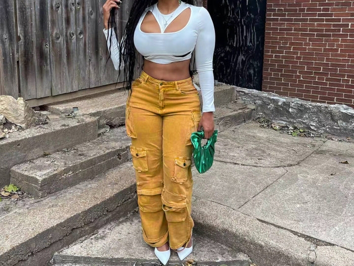 (Only Bottom)(Golden)2023 Styles Women Sexy&Fashion Autumn/Winter TikTok&Instagram Styles Jeans Long PantsSKU: #XF79030-4