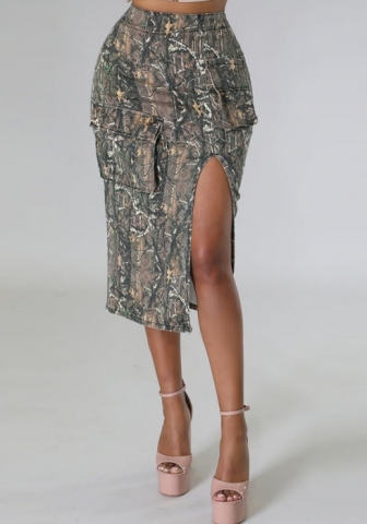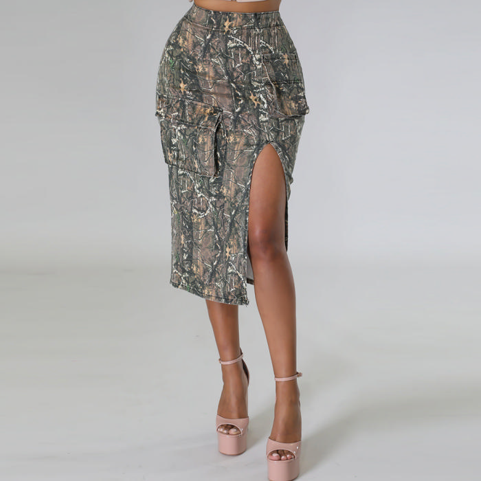 (Only Bottom)(Gray)2023 Styles Women Sexy&Fashion Spring&Summer TikTok&Instagram Styles Camouflage SkirtsSKU: #CF59473-2