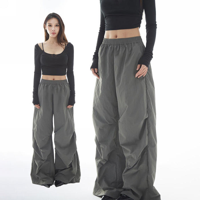 (Only Bottom,Gray)2024 Styles Women Fashion Solid Color Niche Style Pocket Design Mid-Waist Long PantsSKU: #CF76176-3