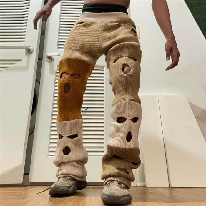 (Only Bottom)(Khaki)2023 Styles Women Sexy&Fashion Autumn/Winter TikTok&Instagram Styles Contrast Color Sweater Rippe Long PantsSKU: #CF77633-4