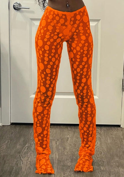 (Only Bottom)(Orange)2023 Styles Women Sexy&Fashion Spring&Summer TikTok&Instagram Styles Mesh Long PantsSKU: #CF77349-2