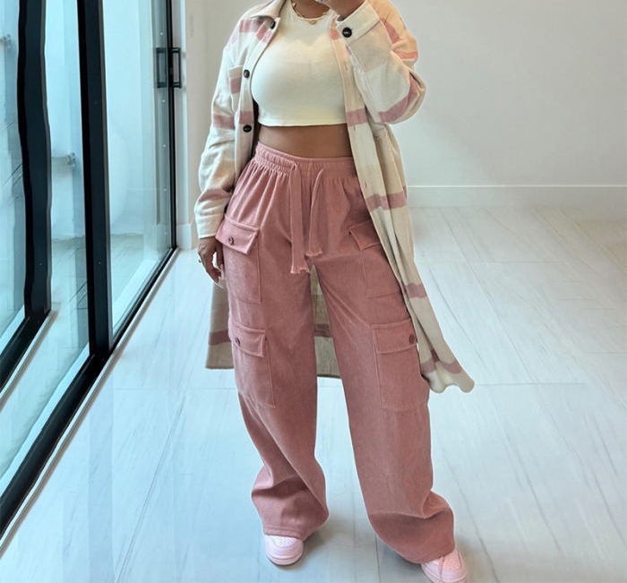 (Only Bottom)(Pink)2023 Styles Women Sexy&Fashion Autumn/Winter TikTok&Instagram Styles Loose Long PantsSKU: #CF47806-2