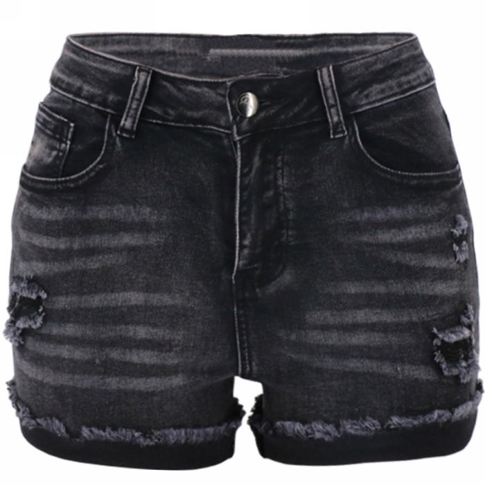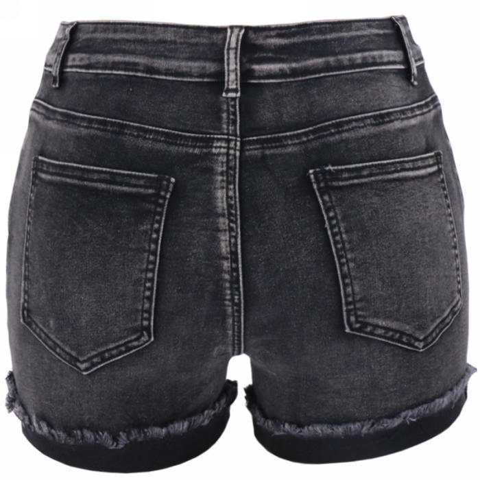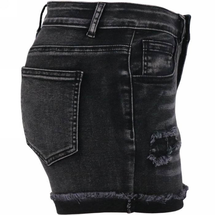 (Only Bottom)(Real Image)2022 Styles Women Fashion INS Styles Black Jeans Ripped Short PantsSKU: #XF03027-1