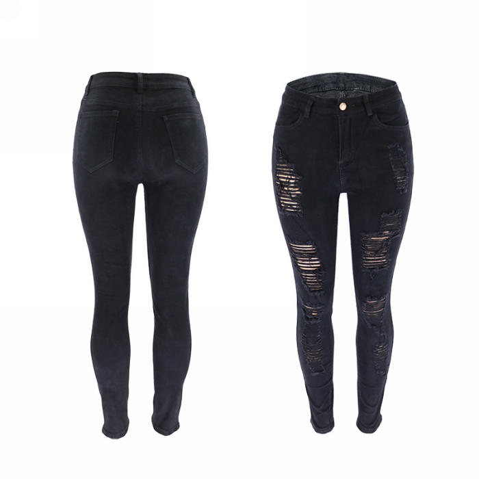 (Only Bottom)(Real Image)2022 Styles Women Fashion INS Styles Jeans Ripped Long PantsSKU: #XF03020-1