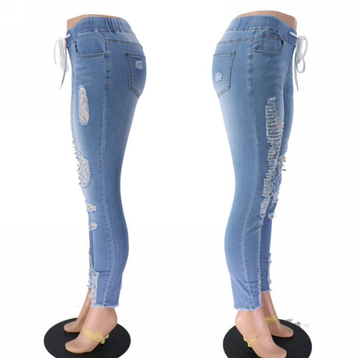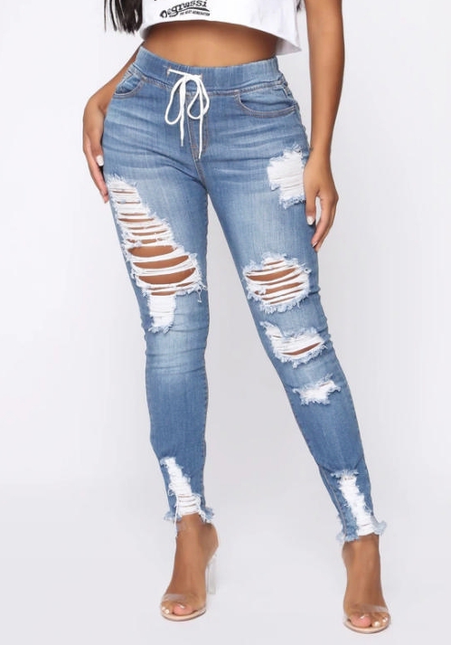 (Only Bottom)(Real Image)2022 Styles Women Fashion INS Styles Jeans Ripped Long PantsSKU: #XF03018-2