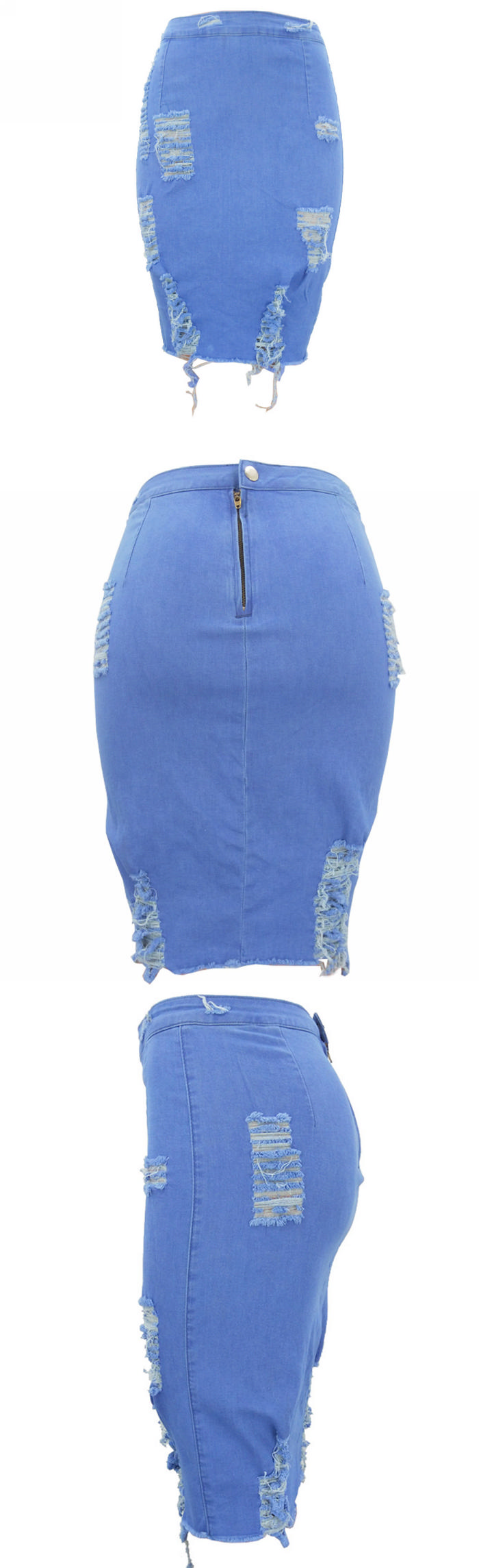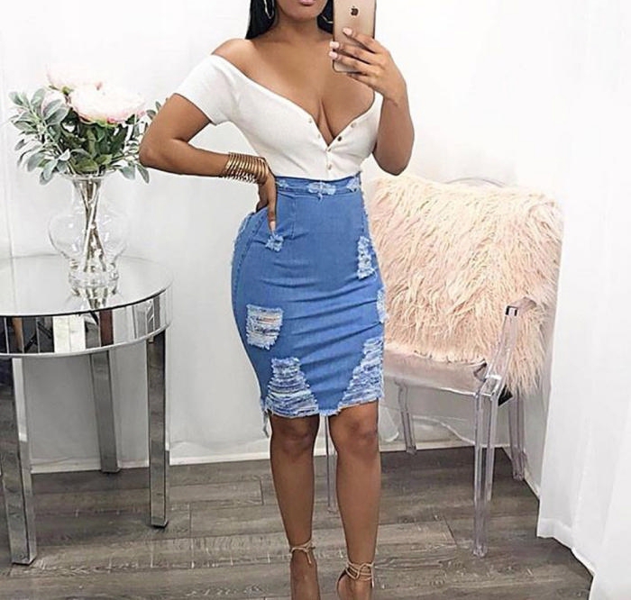 (Only Bottom)(Real Image)2022 Styles Women Fashion INS Styles Jeans Ripped SkirtsSKU: #XF03002-2