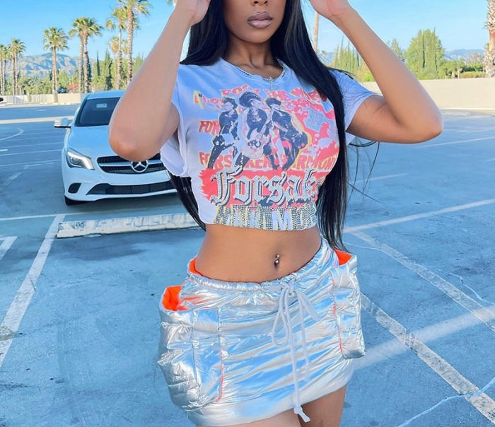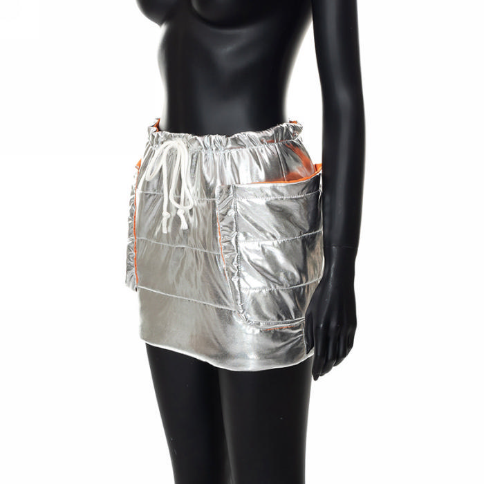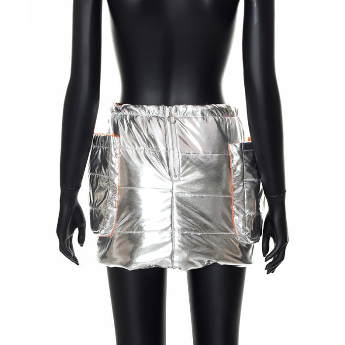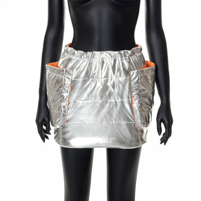 (Only Bottom)(Real Image)2022 Styles Women Fashion INS Styles Sliver SkirtsSKU: #CF68081-1