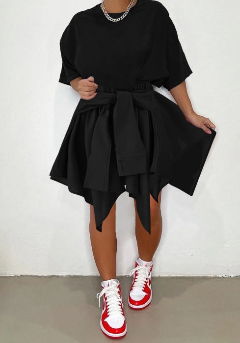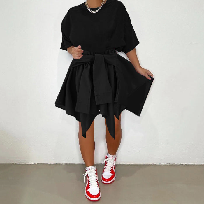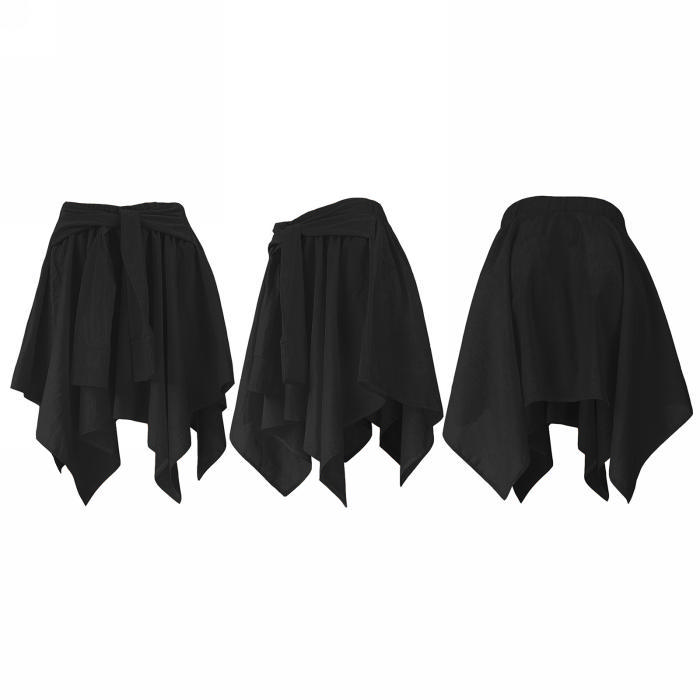 (Only Bottom)(Real Image)2022 Styles Women Fashion INS Styles Solid Color Cotton Irregular SkritsSKU: #CF71001-1